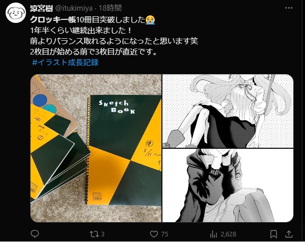 この方をはじめ、表紙を自分仕様のクロッキー帳にして創作意欲を更に高めている投稿が数多く見られました。