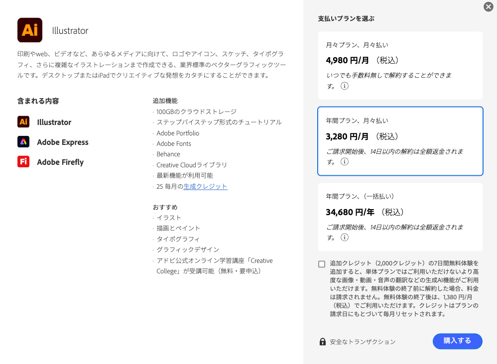 Illustratorの料金プラン