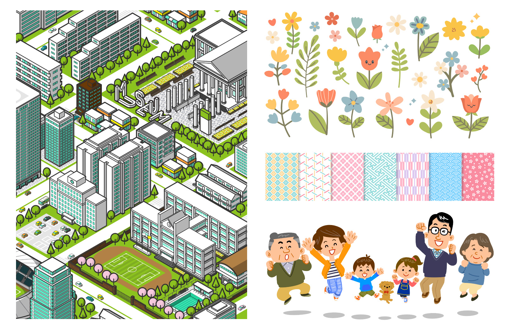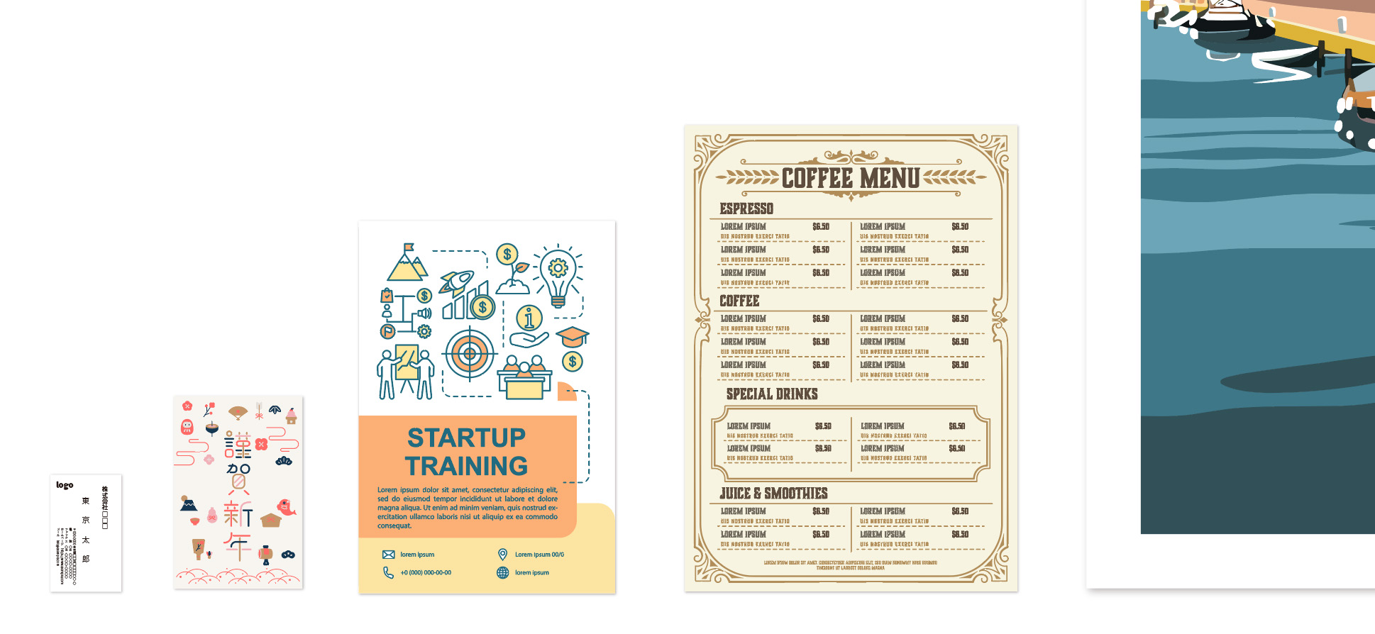 Illustratorは「0(ゼロ)から形を作り出す」ことが得意なソフトです。具体的には以下のような制作物に向いています。